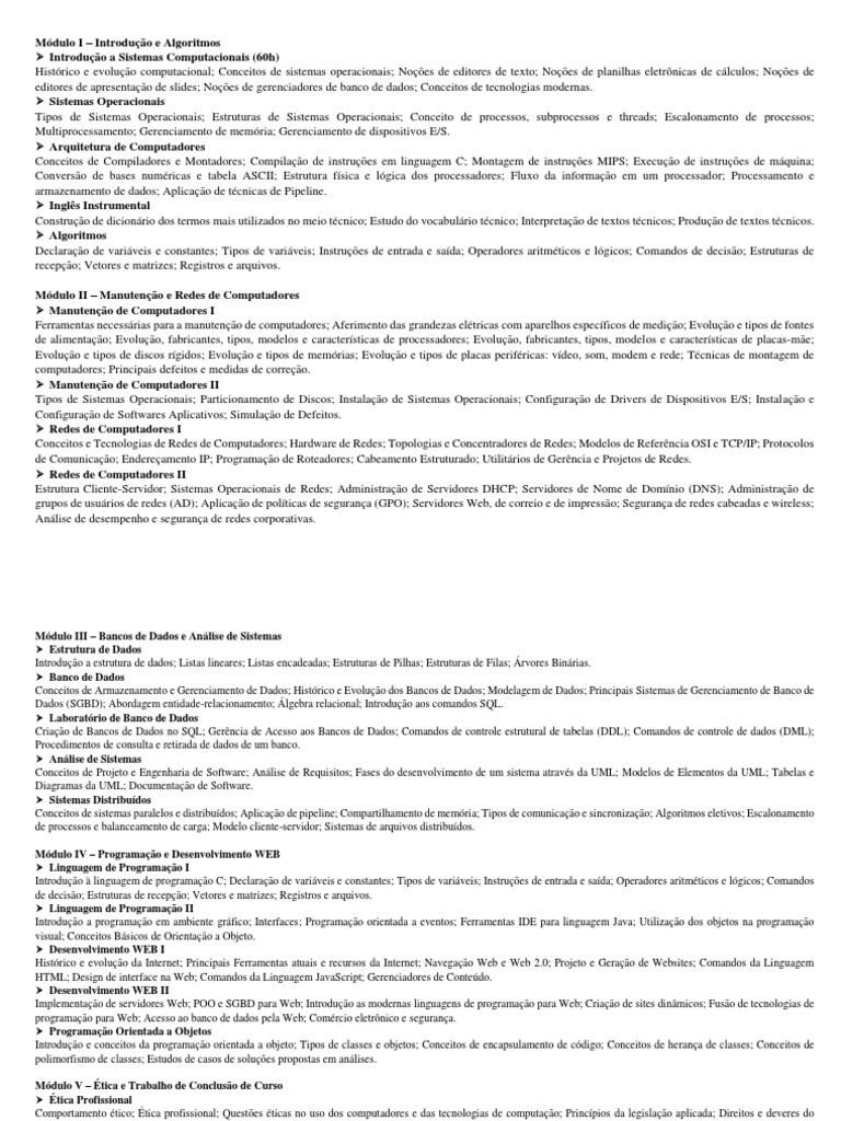 de Comunicação; Endereçamento IP; Programação de Roteadores; Cabeamento Estruturado; Utilitários de Gerência e Projetos de Redes.