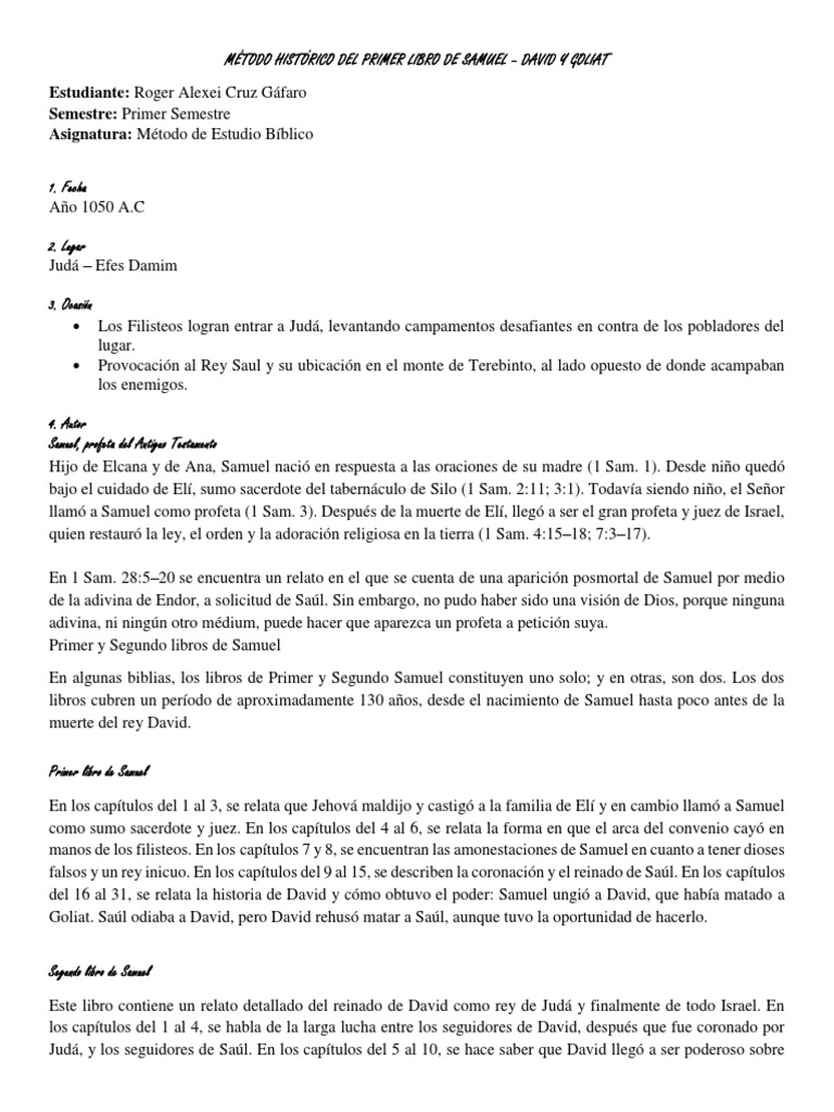 MÉTODO HISTÓRICO DEL PRIMER LIBRO DE SAMUEL – DAVID Y GOLIAT