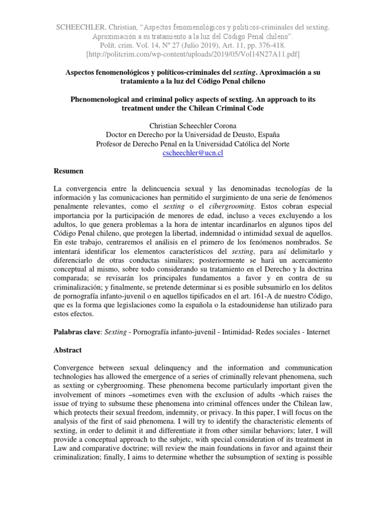 SCHEECHLER, Christian, “Aspectos fenomenológicos y políticos-criminales del sexting.