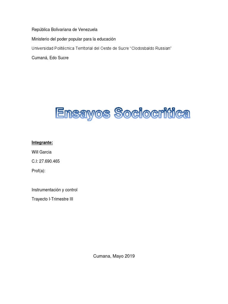 Universidad Politécnica Territorial del Oeste de Sucre “Clodosbaldo Russian”