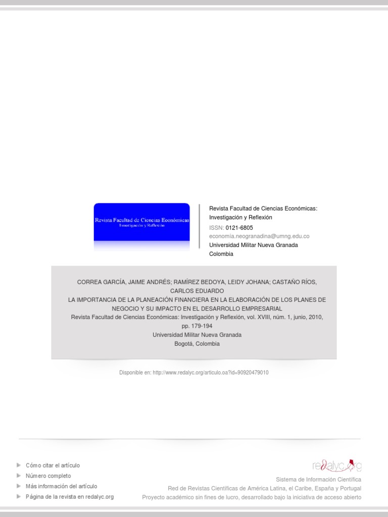 Por lo anterior, la elaboración de planes de negocios Correa, J. A., Jaramillo, F., Ramírez, L. J. & Castaño, C. E. (2008).