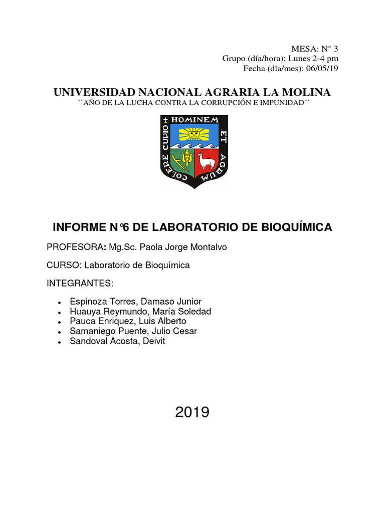 INFORME N°6 DE LABORATORIO DE BIOQUÍMICA