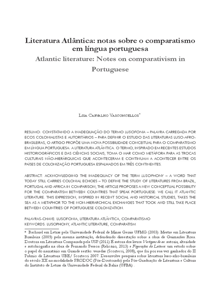zar) ver como a consideração de uma Literatura Atlântica lança luz sobre um