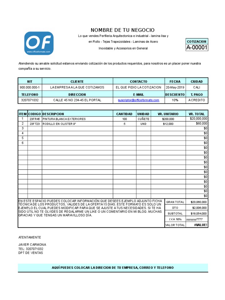 900.000.000-1 LA EMPRESA A LA QUE COTIZAMOS EL QUE PIDIO LA COTIZACION 20-May-2019 CALI