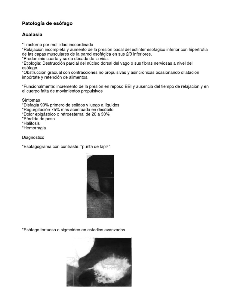 *Relajación incompleta y aumento de la presión basal del esfinter esofagico inferior con hipertrofia