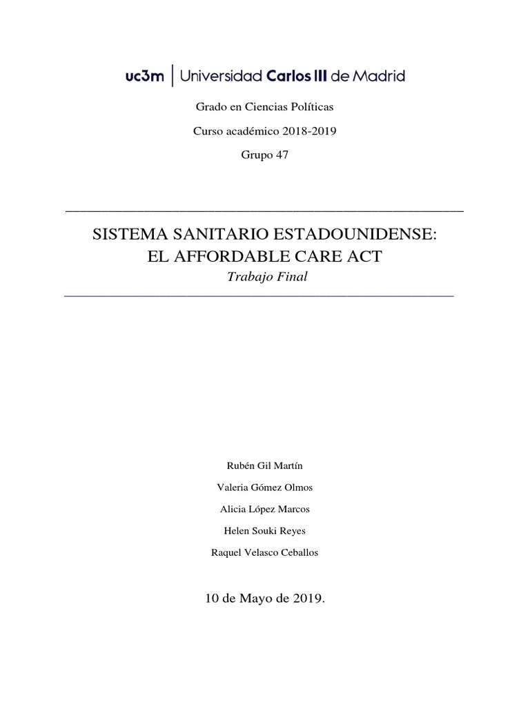 federal, así como del sistema sanitario, se explica el Affordable Care Act y se define el