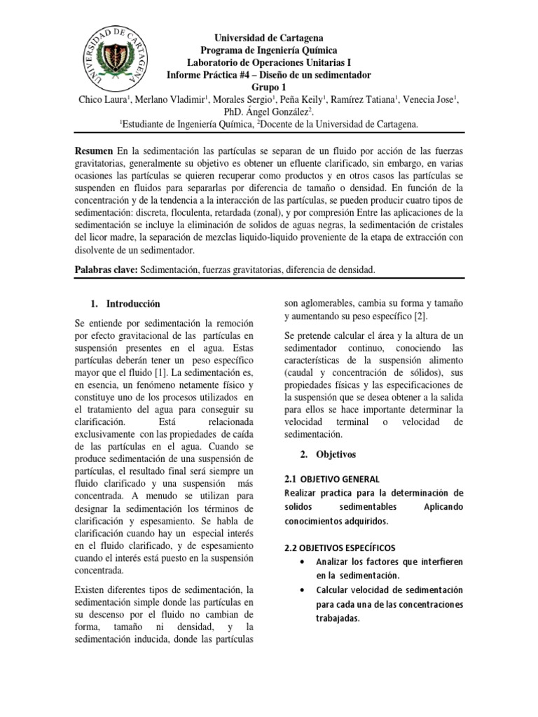 produce sedimentación de una suspensión de 2. Objetivos