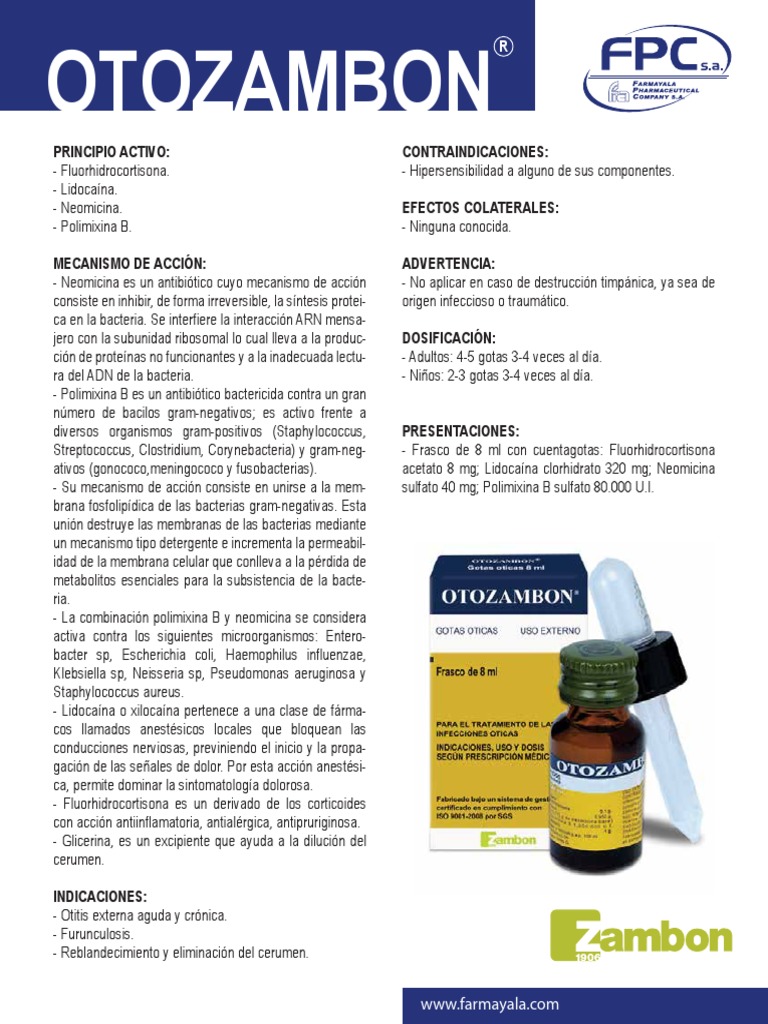 - Neomicina es un antibiótico cuyo mecanismo de acción - No aplicar en caso de destrucción timpánica, ya sea de