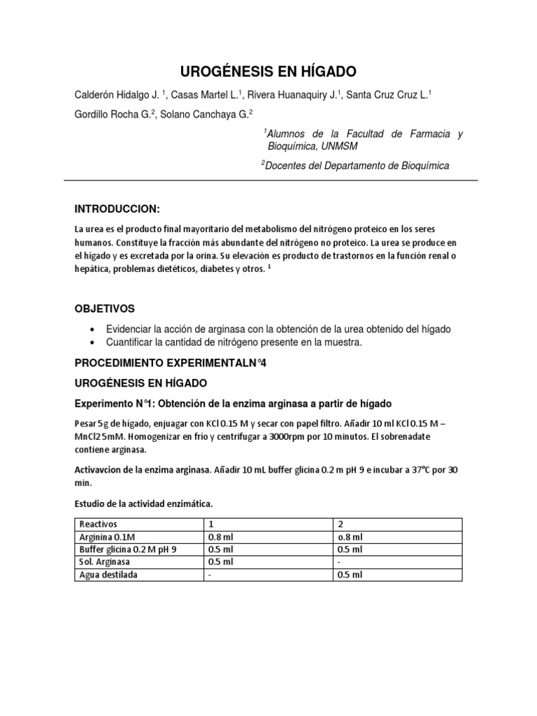 Experimento N°1: Obtención de la enzima arginasa a partir de hígado