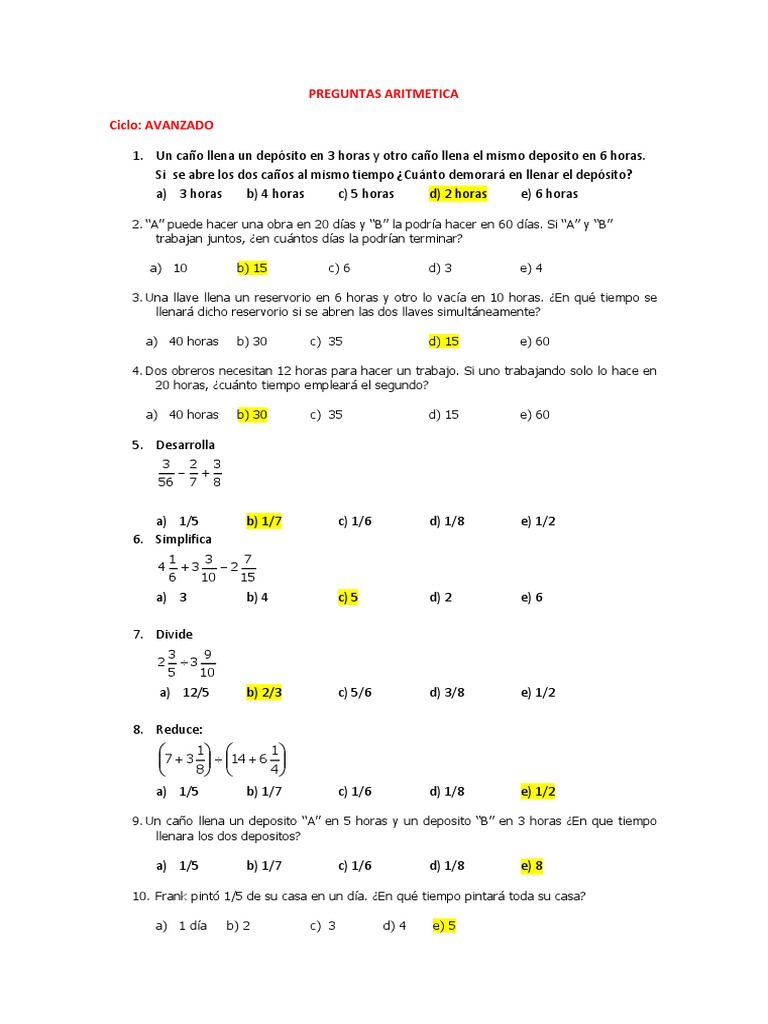PREGUNTAS ARITMETICA