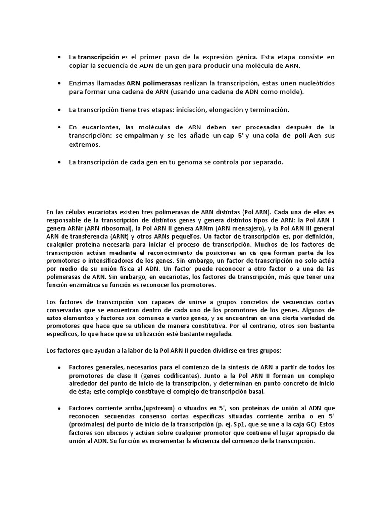 que pueda ser transcrita. En todo gen, además, distinguiremos las siguientes regiones: