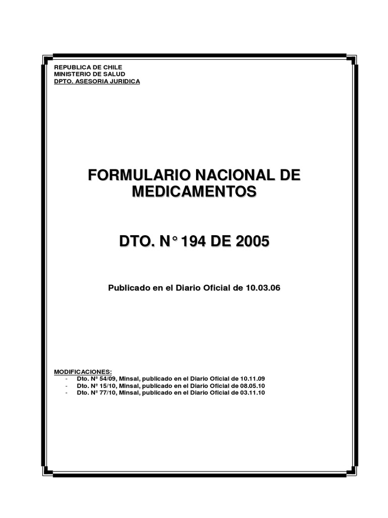 - Dto. Nº 77/10, Minsal, publicado en el Diario Oficial de 03.11.10