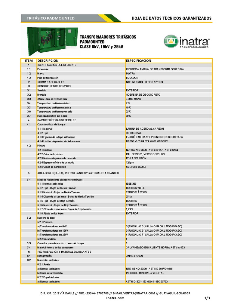 TRIFÁSICO PADMOUNTED HOJA DE DATOS TÉCNICOS GARANTIZADOS