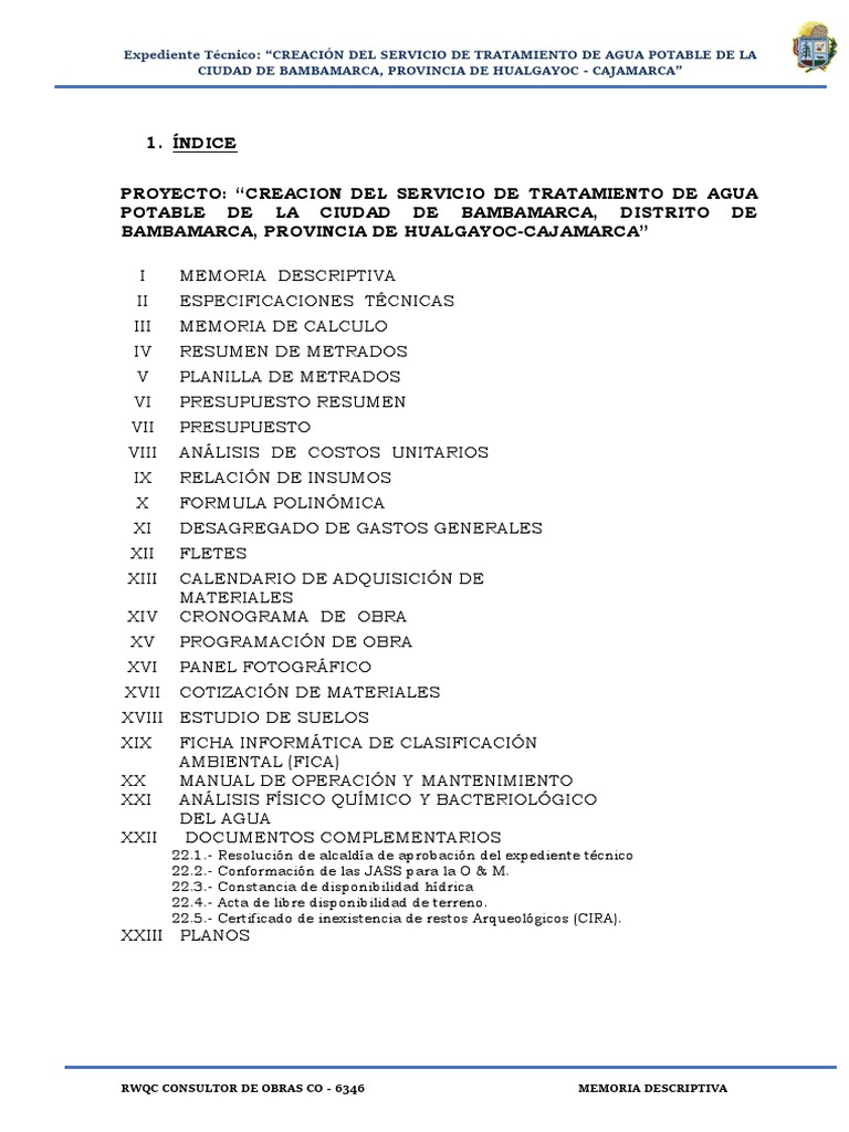 RWQC CONSULTOR DE OBRAS CO - 6346 MEMORIA DESCRIPTIVA