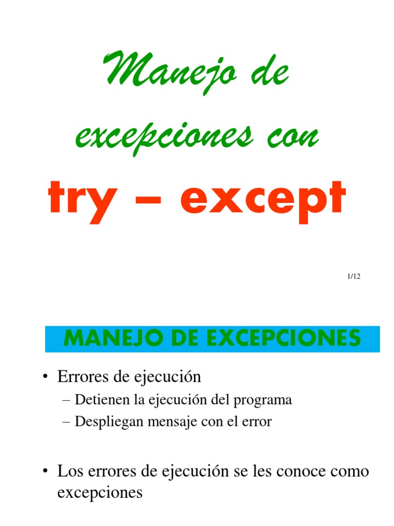 Si usamos un except sin el tipo de error, éste debe ponerse de