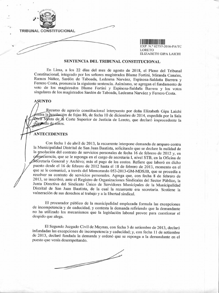 Ferrero Costa, pronuncia la siguiente sentencia. Asimismo, se agregan el fundamento de