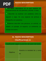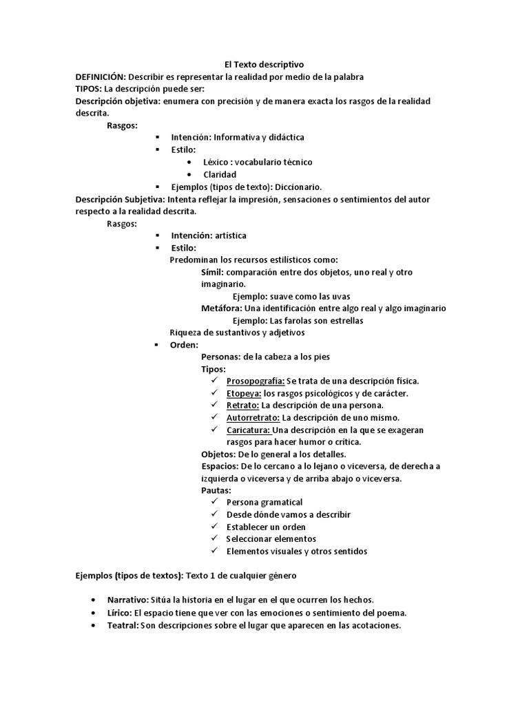 Descripción objetiva: enumera con precisión y de manera exacta los rasgos de la realidad