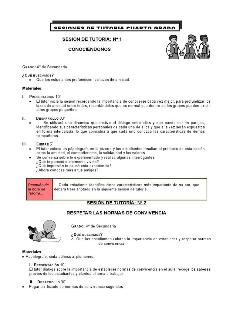 SESIONES DE TUTORIA CUARTO GRADO