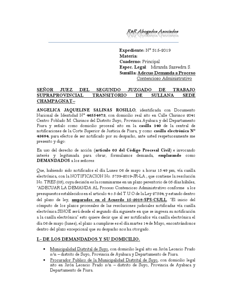 “ADECUAR LA DEMANDA AL Proceso Contencioso Administrativo conforme a los