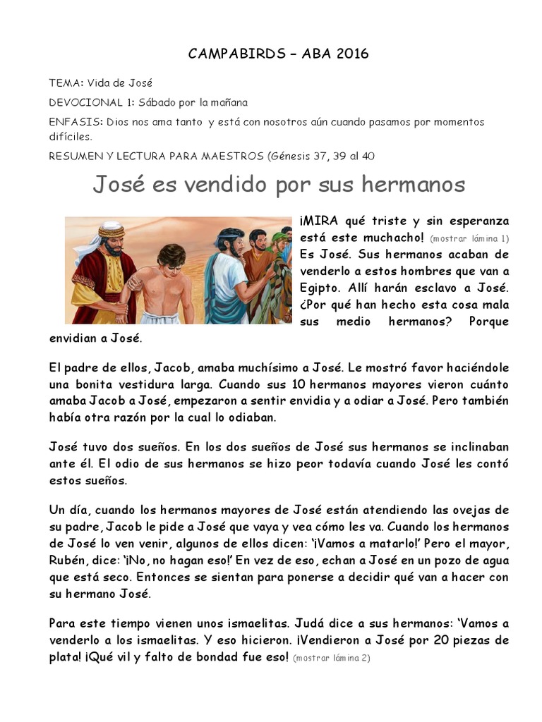 RESUMEN Y LECTURA PARA MAESTROS (Génesis 37, 39 al 40