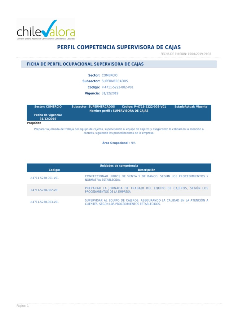 Nombre perfil : SUPERVISORA DE CAJAS