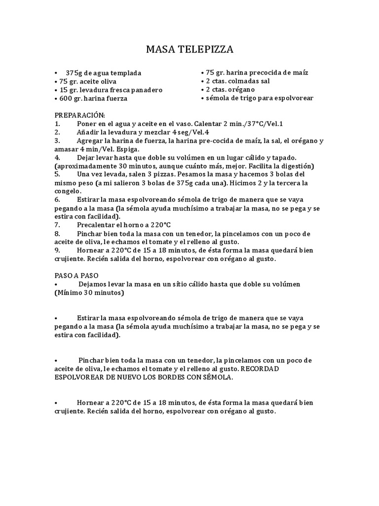 • 15 gr. levadura fresca panadero • 2 ctas. orégano