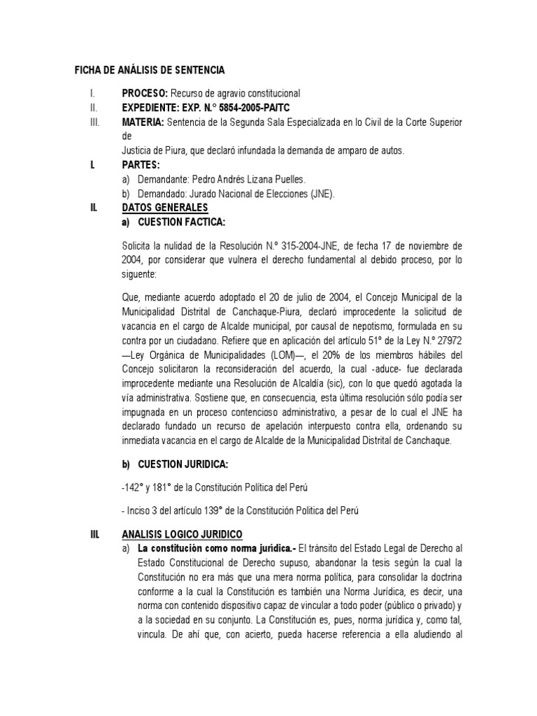 II. EXPEDIENTE: EXP. N.° 5854-2005-PA/TC