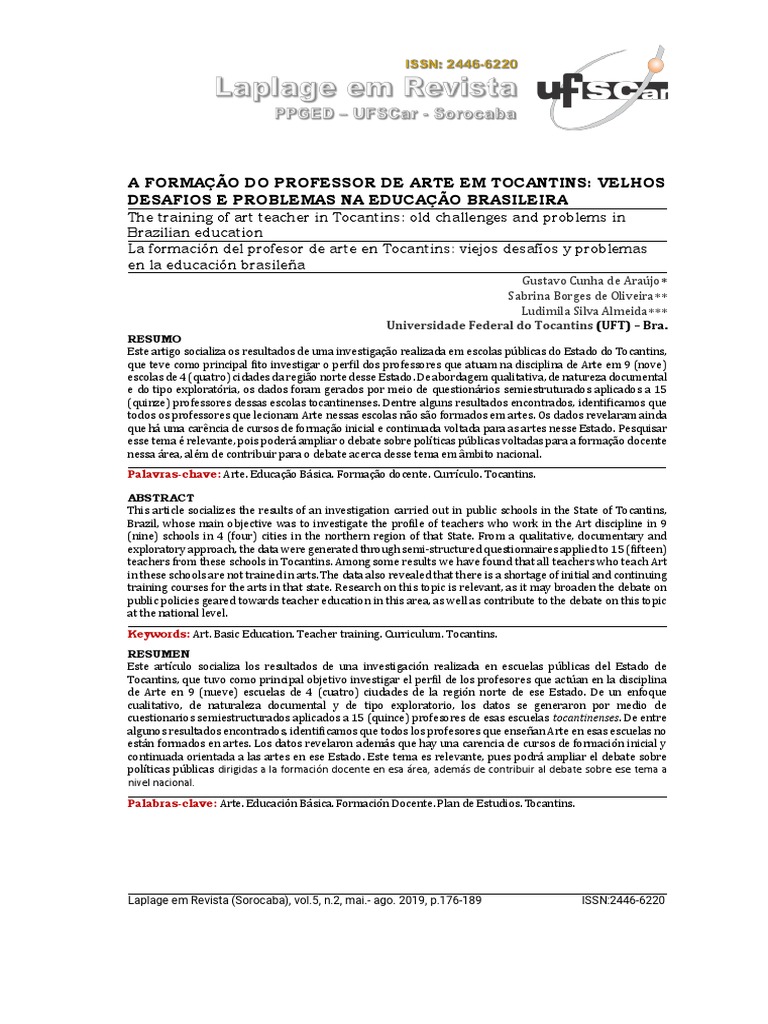 • 187 A formação do professor de arte em Tocantins: velhos desafios e problemas na educação...