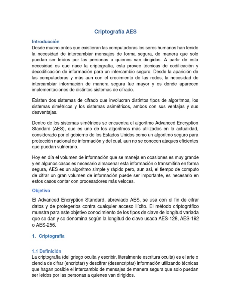 Standard (AES), que es uno de los algoritmos más utilizados en la actualidad,