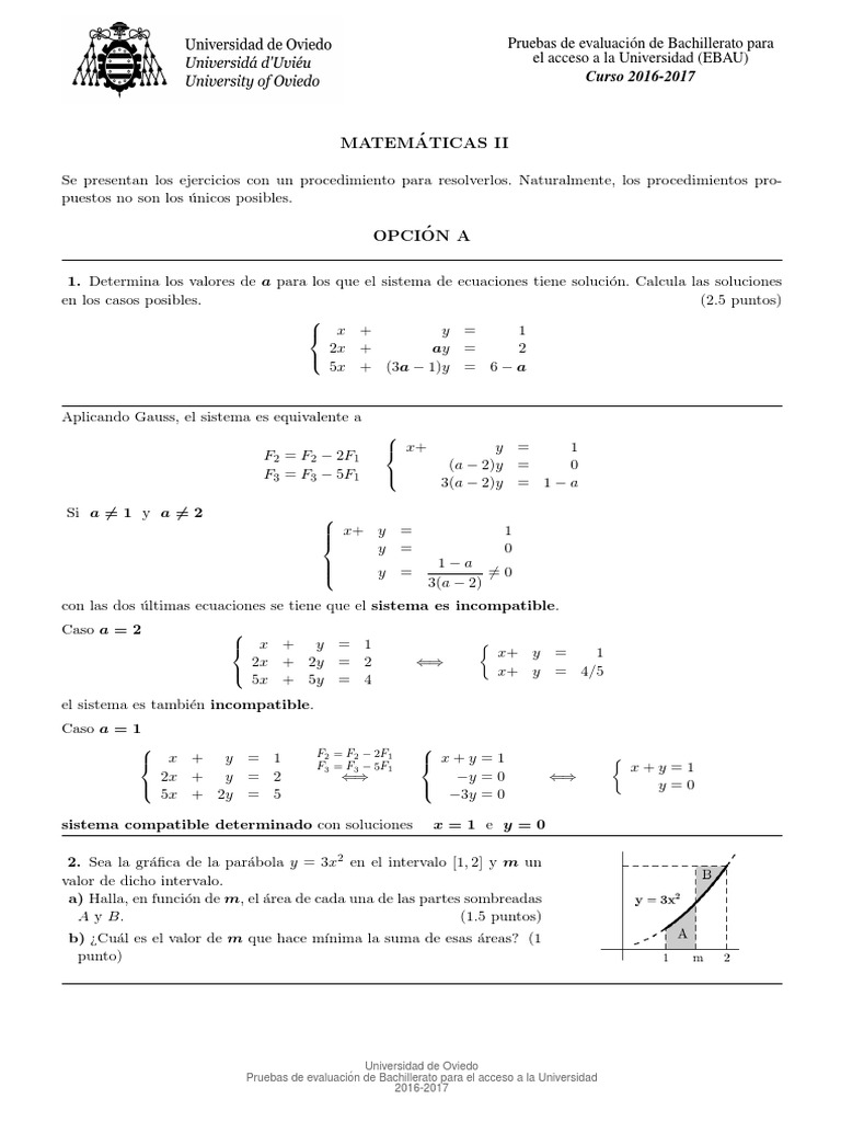 1. Determina los valores de a para los que el sistema de ecuaciones tiene solución. Calcula las soluciones