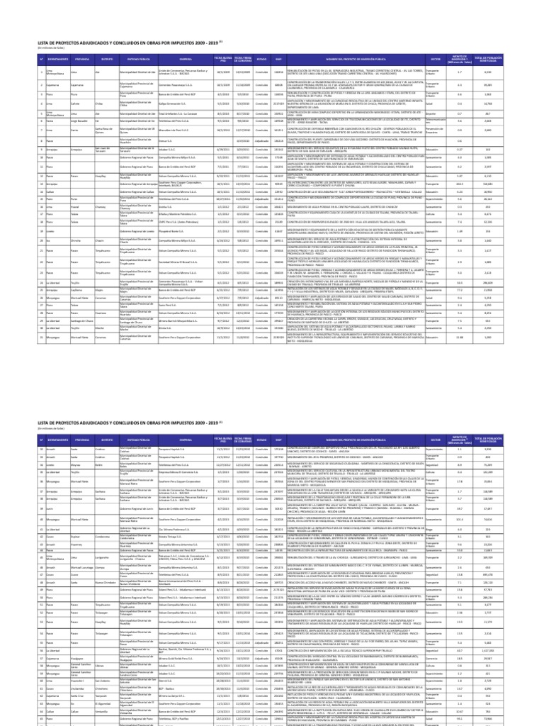 LISTA DE PROYECTOS ADJUDICADOS Y CONCLUIDOS EN OBRAS POR IMPUESTOS 2009 - 2019 (1)