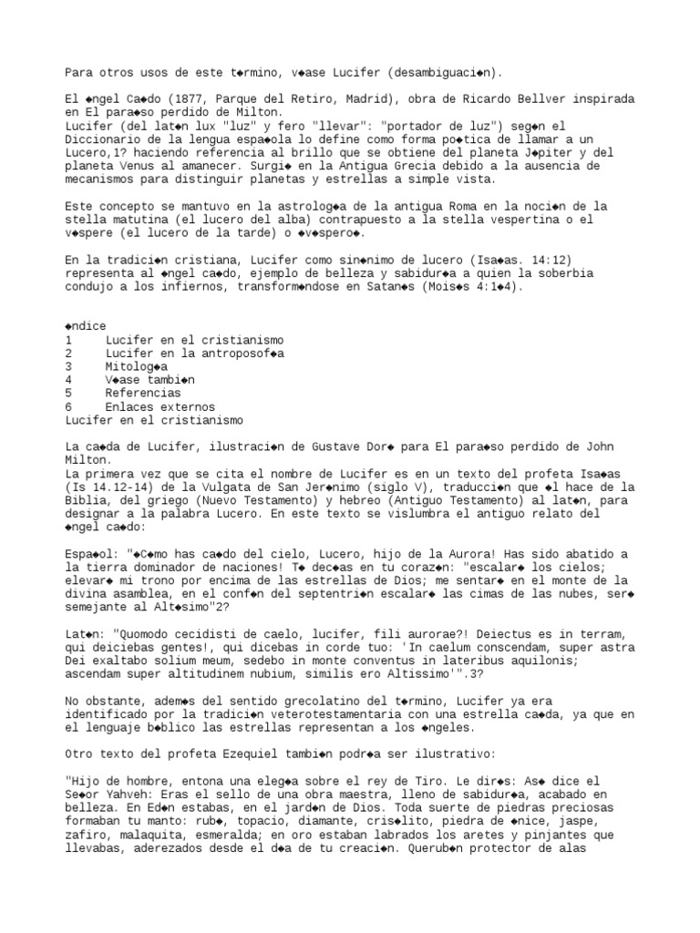 La primera vez que se cita el nombre de Lucifer es en un texto del profeta Isa�as