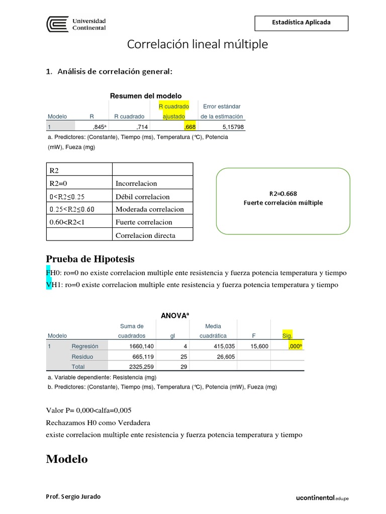 existe correlacion multiple ente resistencia y fuerza potencia temperatura y tiempo