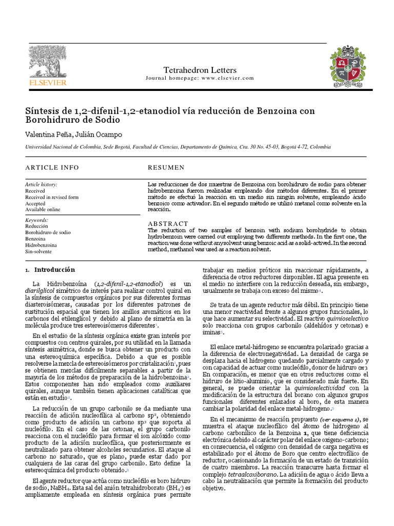 Article history: Las reducciones de dos muestras de Benzoina con borohidruro de sodio para obtener