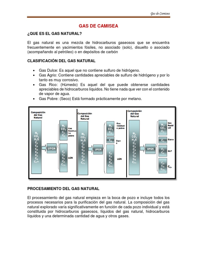 procesos necesarios para la purificación del gas natural. La composición del gas