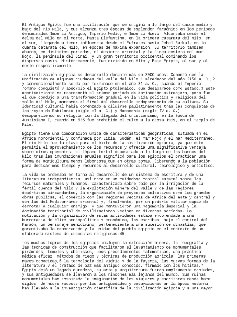 El Antiguo Egipto fue una civilización que se originó a lo largo del cauce medio y