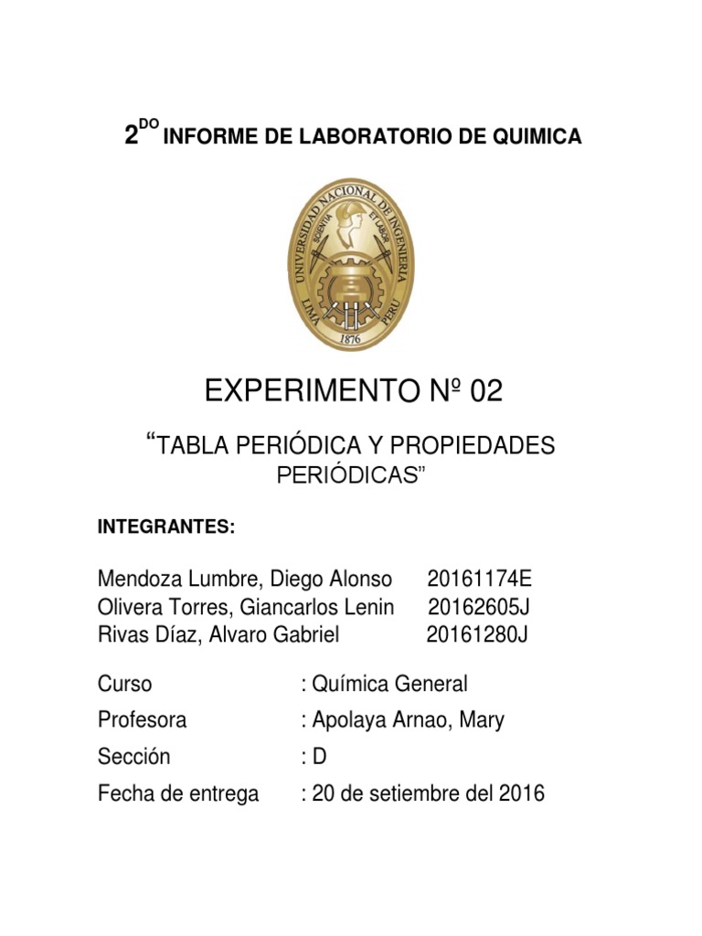 PRÁCTICA N° 2 TABLA PERIÓDICA Y