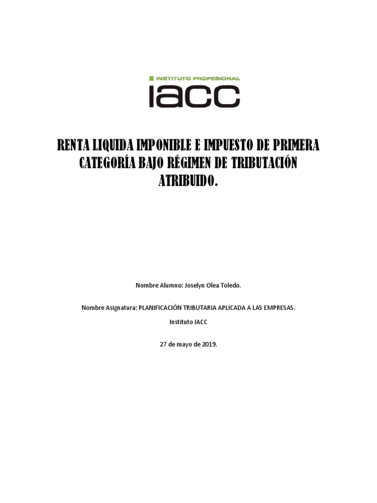 IACC (2018). Introducción a la Ley de Impuesto a la Renta (LIR). Planificación tributaria aplicada a