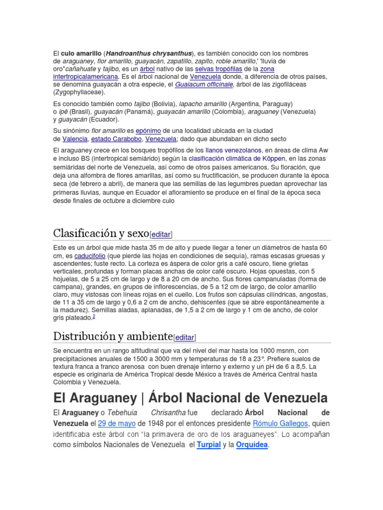 intertropicalamericana. Es el árbol nacional de Venezuela donde, a diferencia de otros países,