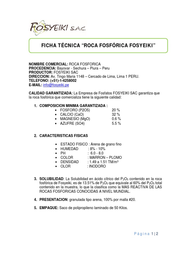 FICHA TÉCNICA “ROCA FOSFÓRICA FOSYEIKI”