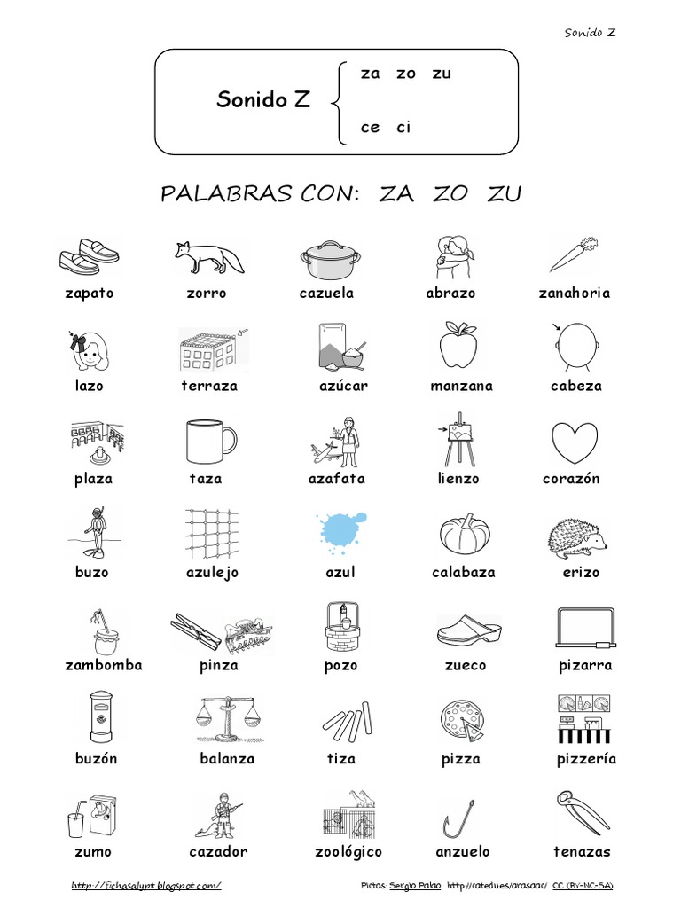 Este documento presenta palabras que contienen los sonidos "za zo zu" y "ce ci". Divide las palabras en dos listas correspondientes a cada sonido y proporciona instrucciones para que los estudiantes clasifiquen las palabras y escriban sus nombres.