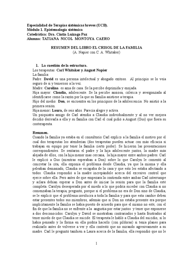 entre los dos progenitores. Luego terminó la sesión y la familia decidió seguir la terapia
