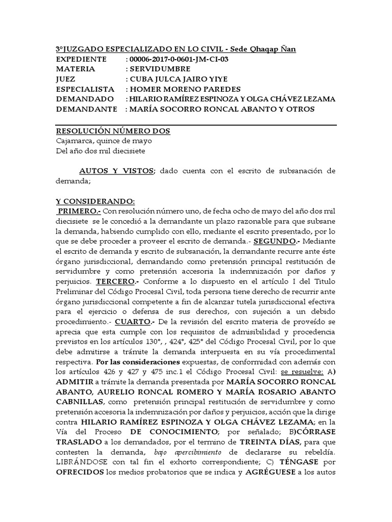 resolución admisoria a todos los demandados. E) Al primer otrosi dispongo que