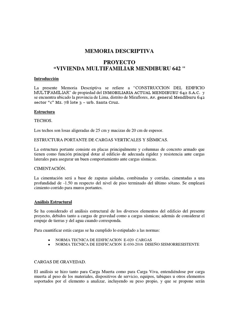 La presente Memoria Descriptiva se refiere a “CONSTRUCCION DEL EDIFICIO