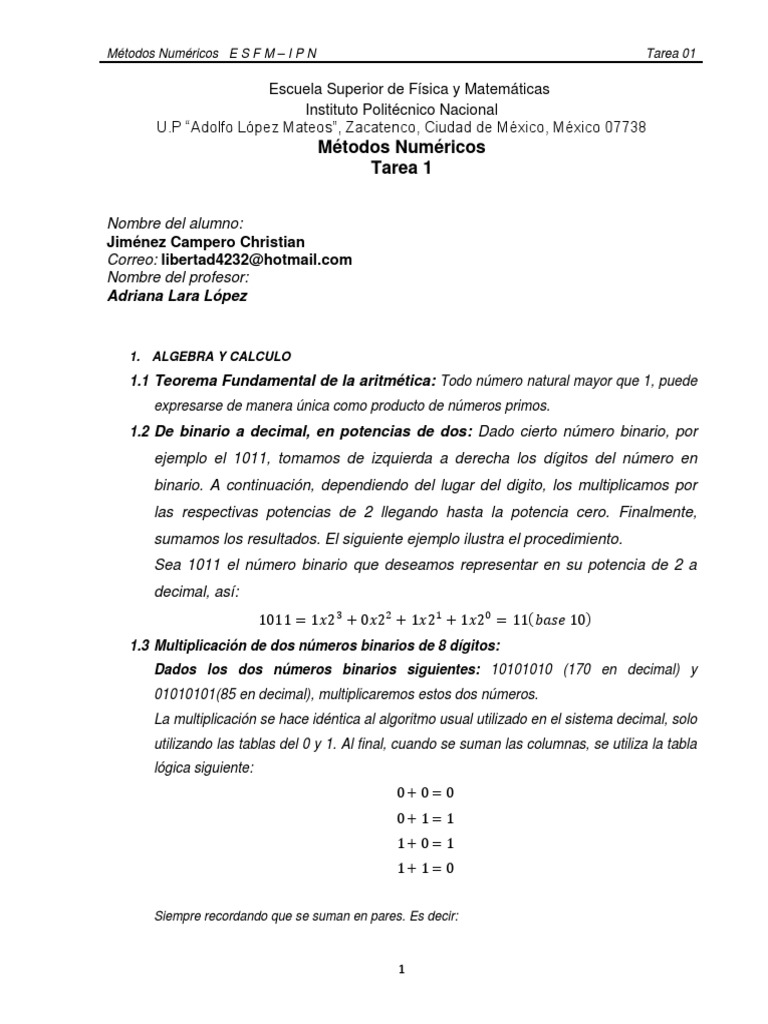 Métodos Numéricos E S F M – I P N Tarea 01