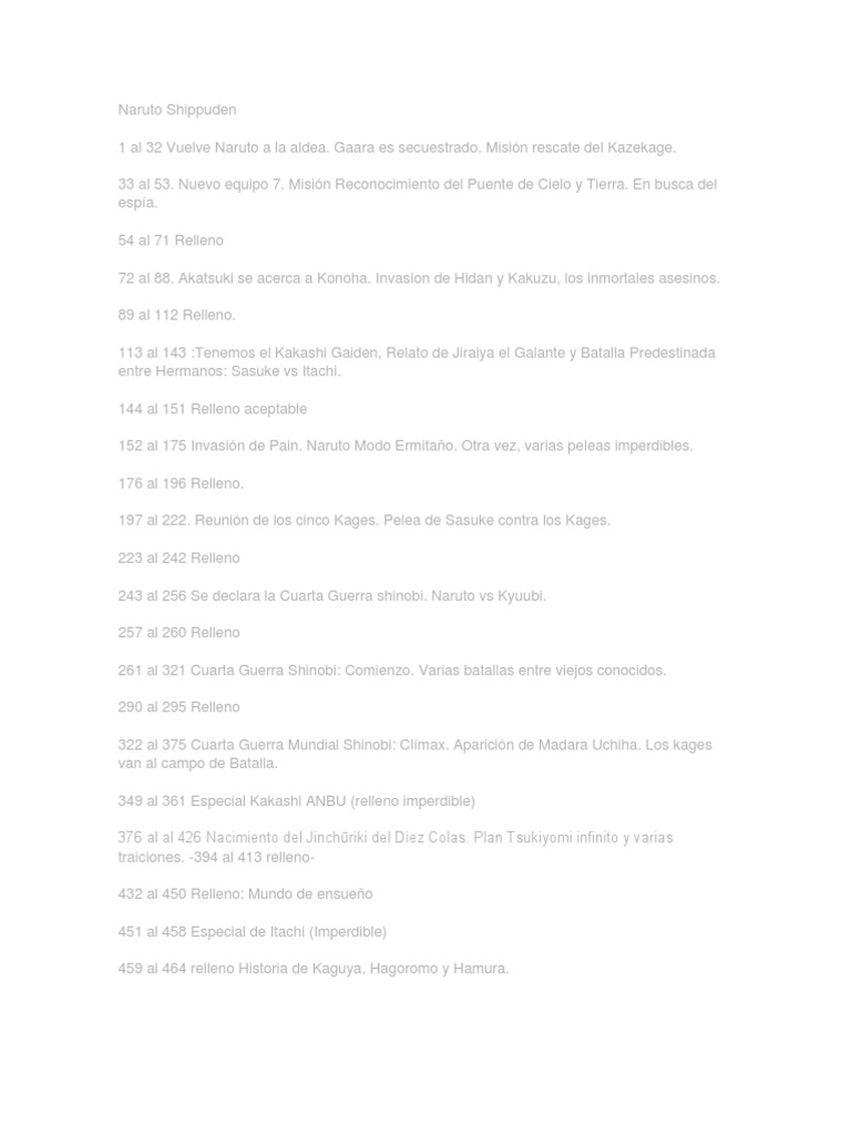 243 al 256 Se declara la Cuarta Guerra shinobi. Naruto vs Kyuubi.