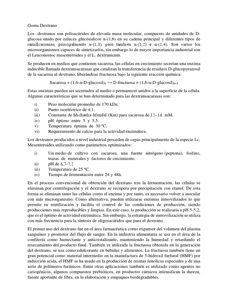 Los dextranos son polisacáridos de elevada masa molecular, compuesto de unidades de D-