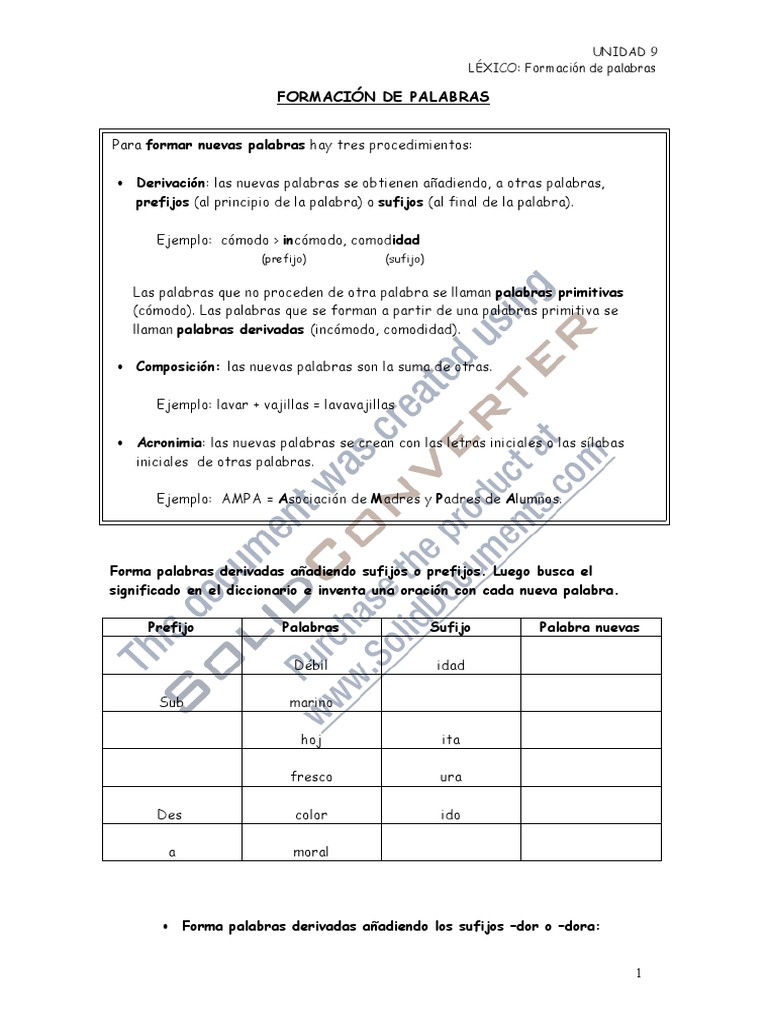 Forma palabras derivadas añadiendo sufijos o prefijos. Luego busca el