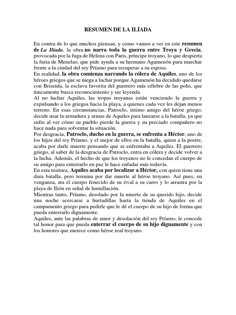 RESUMEN DE LA ILÍADA