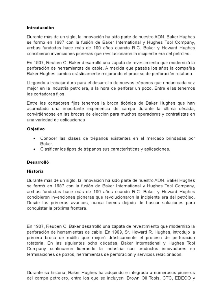 rotatoria. En las siguientes ocho décadas, Baker International y Hughes Tool